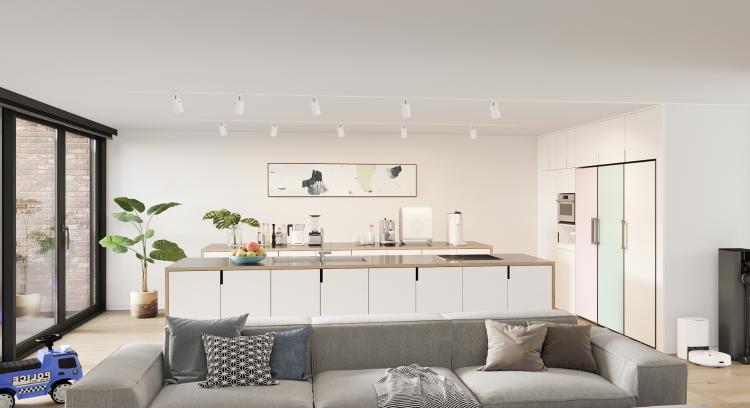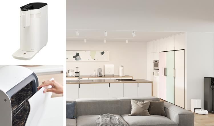 자칫 밋밋하고 차갑게 느껴질 수 있는 주방 공간에 LG 오브제 컨버터블 냉장고, 냉동고, 김치냉장고를 배치해 화사하면서도 감각적인 인테리어로 연출했습니다. 주방 공간은 특히 일상을 더욱 편리하게 해주는 아이템들을 많이 활용하는 공간이기도 한데요. 상하좌우 출수탭으로 어떤 용기도 편리하게 물을 받을 수 있는 LG 오브제 정수기와 완전 소독 시스템으로 아기 키우는 집이라면 꼭 필요한 페어런토리 젖병소독기는 아기를 키우는 집이라면 꼭 필요한 필수템이 아닐까 싶네요.