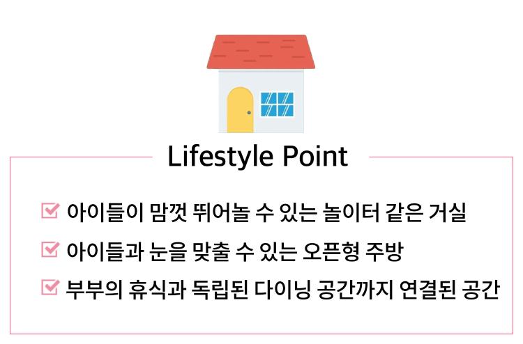 주방과 거실이 바로 이어져 있는 오픈형 주방 형태는 아이들과 부모가 시각적으로 계속 소통할 수 있는 장점이 있습니다. 요리를 하는 동안에도 아이들이 거실에서 노는 모습을 지켜볼 수 있어 보다 안전한 환경에서 아이들이 생활할 수 있습니다.