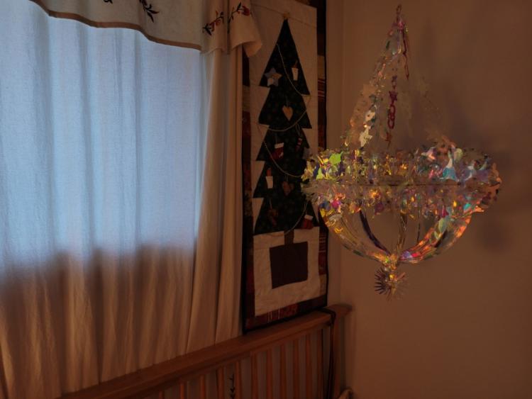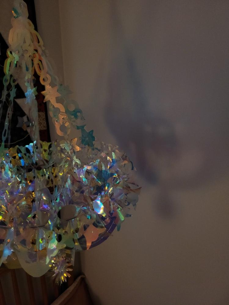 머리맡에 홀로그램 샹들리에를 달아놨어요