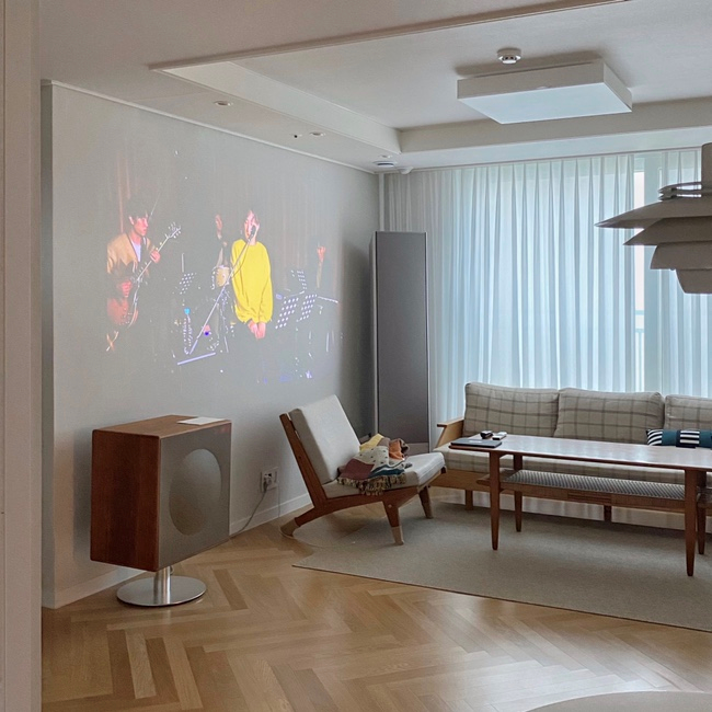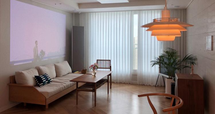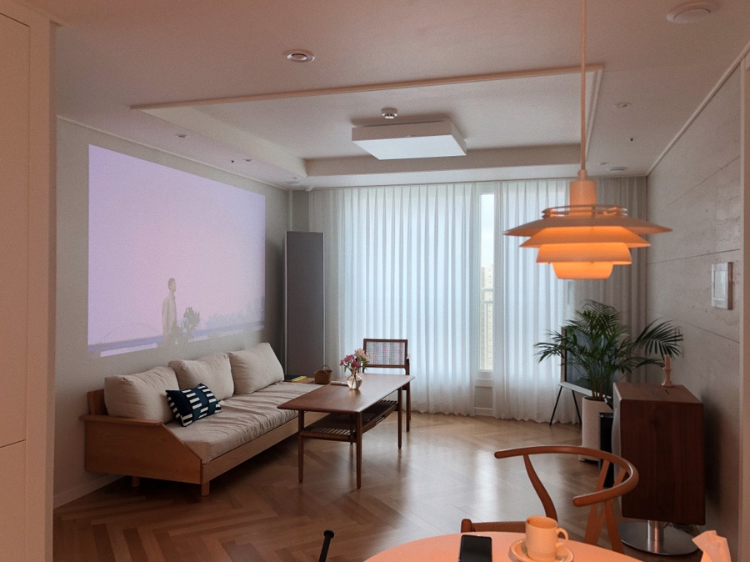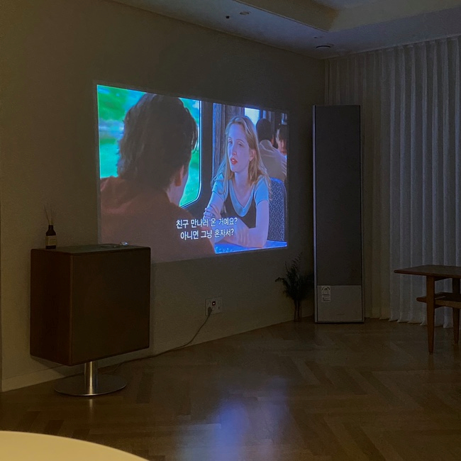빔 프로젝터로 영화를 틀어두면 영화관이 되었다가