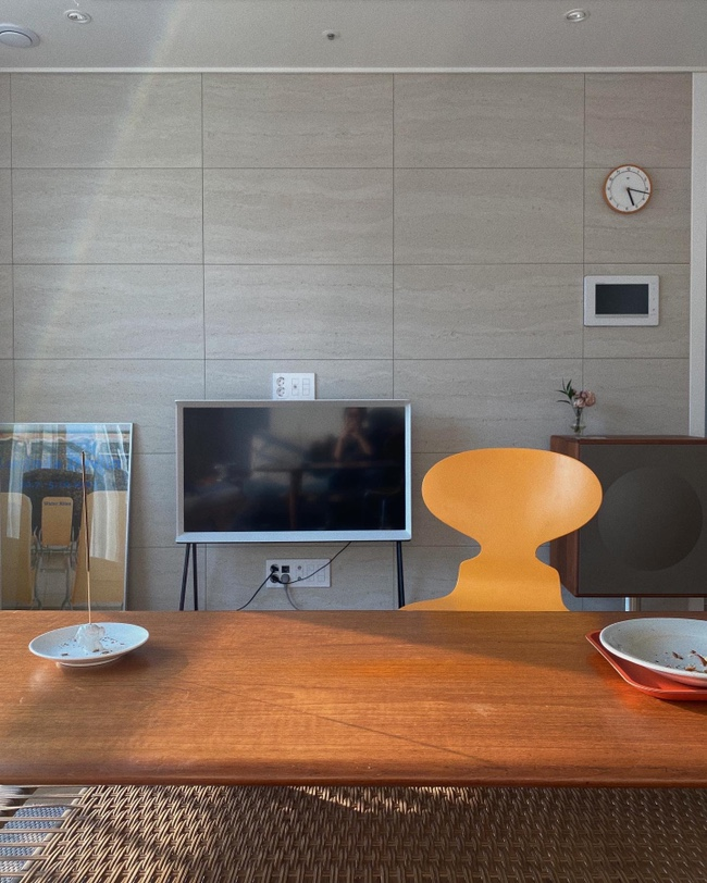 저희는 이동이 간편한 세리프 TV를 쓰고 있어서 주기적으로 가구를 옮기는 편이에요. 거실의 가구들은 자주 바꾸기가 어려우니까 이런 식으로 위치를 변경하면서 다른 분위기를 주는 걸 강추해요!