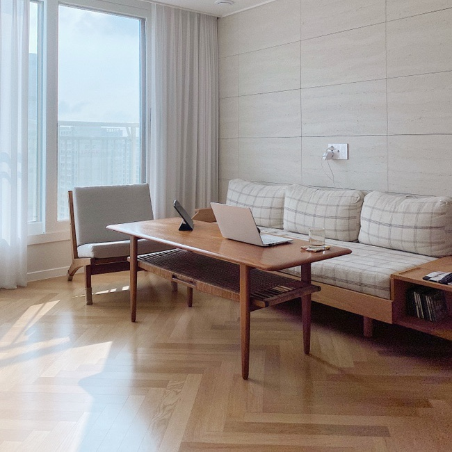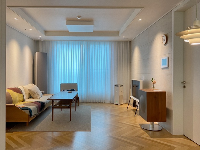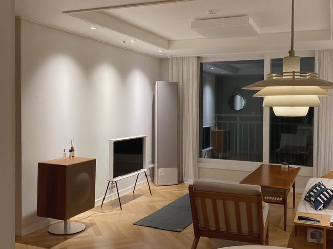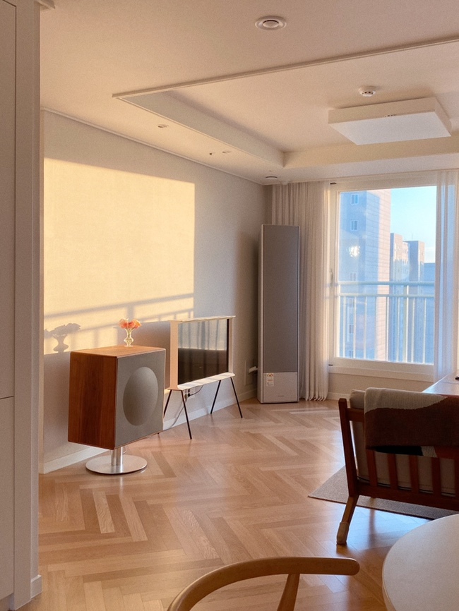 2년 전에 입주해서 살고 있는데 시간이 지나면서 우리의 라이프스타일에 가장 최적화된 구조로 자리 잡은 것 같아 너무 만족하면서 살고 있어요. 방 3개, 확장된 24평 집인데 둘이 살고 있고 확장형이라 좁다는 느낌은 안들더라구요.