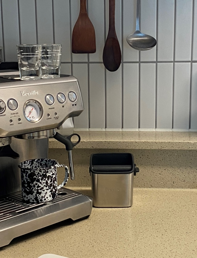 2년 정도를 넉박스 없이 살았는데 막상 써보니 이게 진짜 편해요. 사이즈도 작아서 자리 차지도 많이 안하고, 같은 브랜드의 제품이라 잘 어울리기도 하고- 반자동 커피 머신 쓰는 분들에게 넉박스는 정말 강추합니다!