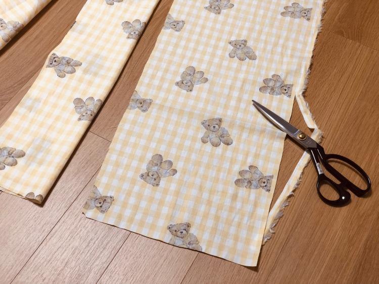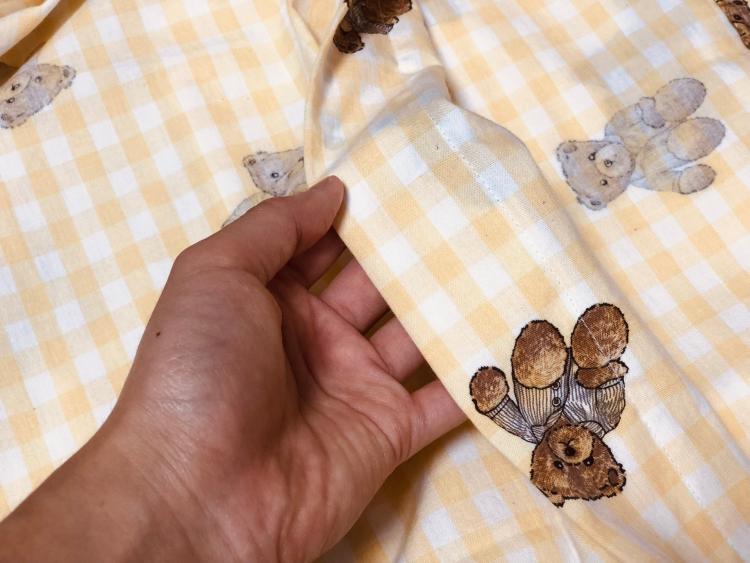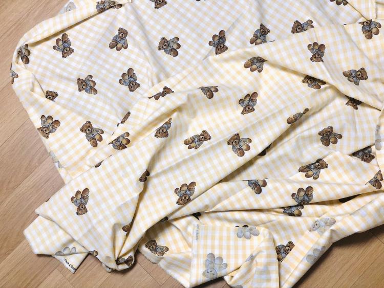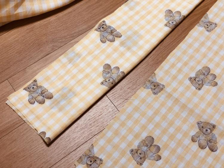 안녕하세요, 살렘입니다. 오늘 파자마를 입은 곰돌이 인형 패턴으로 만든 노란 체크무늬 커튼을 소개할게요.