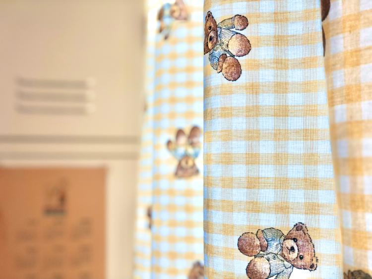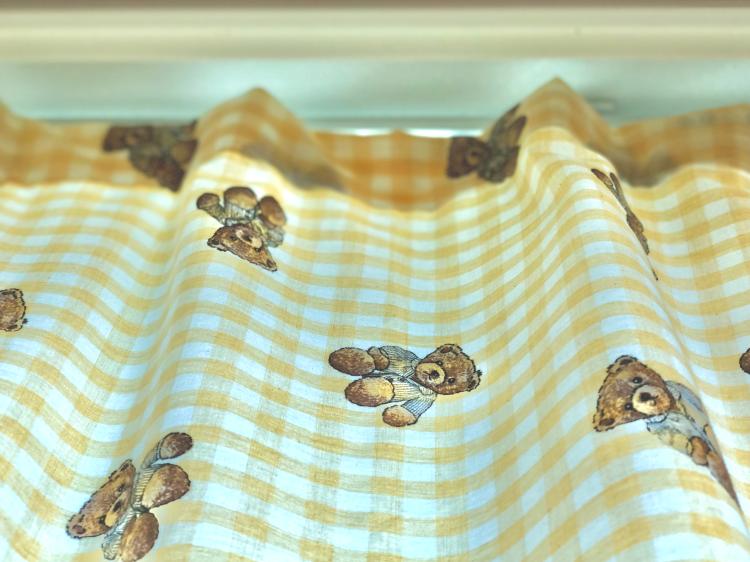 아마 세상에 하나밖에 없을, 아이가 있는 우리 집의 곰돌이 노란 체크 커튼.