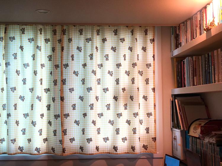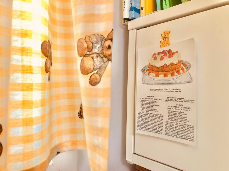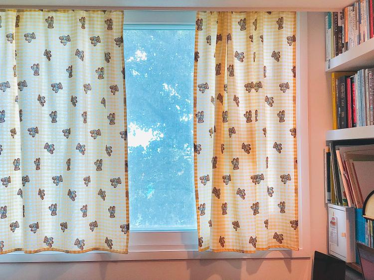 요즘, 노란색 체크에 마음이 끌리고, 빈티지한 곰인형에 눈길이 끌렸는데 이 커튼이 요즘 제 관심사의 조합물인 듯합니다.