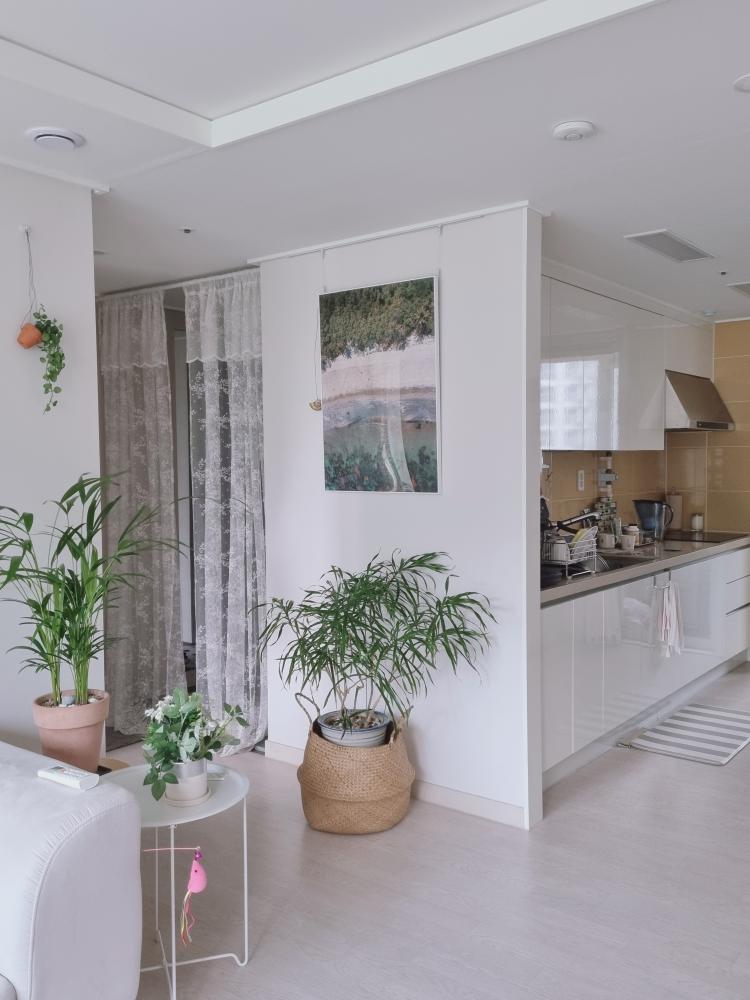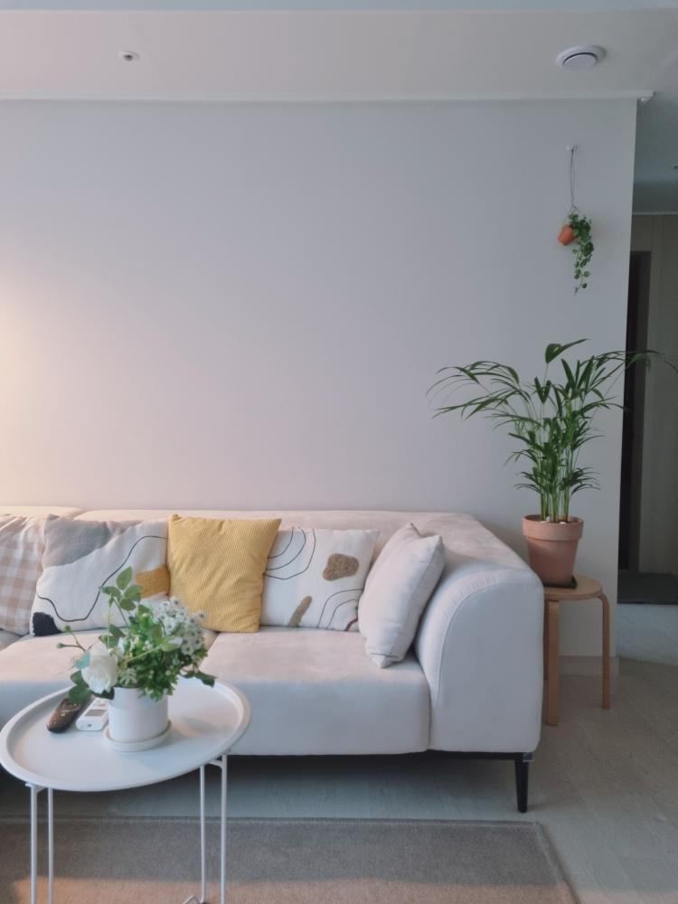 쉬는 날이면 청소와 정리정돈이 취미인 저! 그래서인지 청소하기 쉽게 심플하고 미니멀한 느낌을 좋아한답니다. 우리집 컨셉은 눈이 편안한 느낌을 주기위해서 색상은 우드&화이트. 그리고 제가 좋아하는 노랑색으로 약간의 포인트를 주었어요. 식물들도 곳곳에 배치해서 편안한 느낌이 들도록 했답니다.