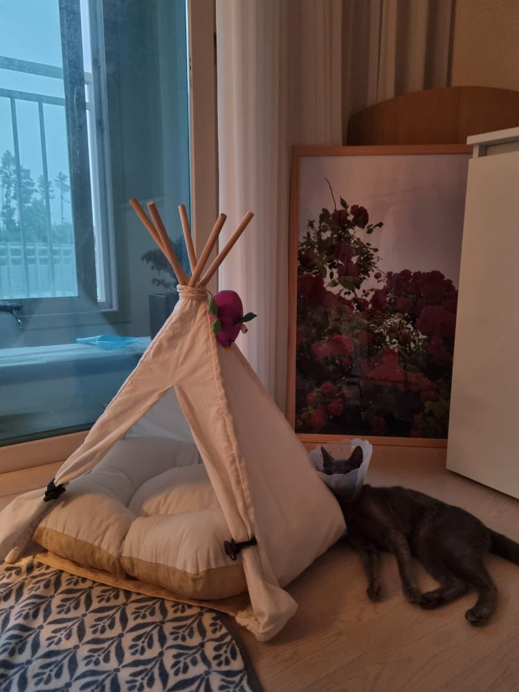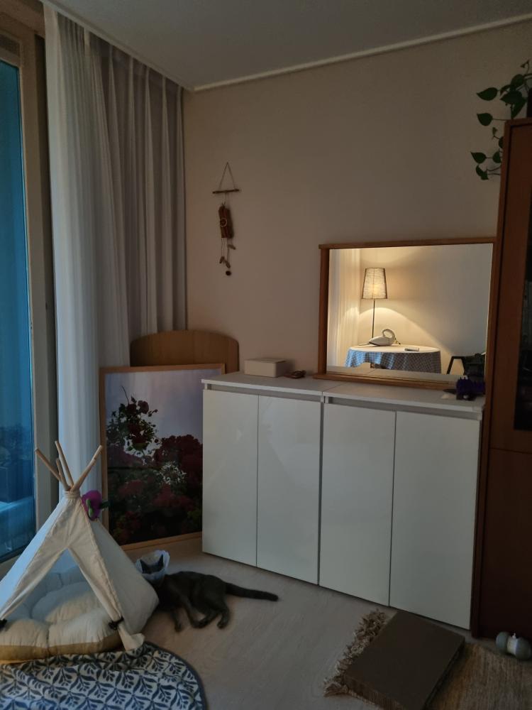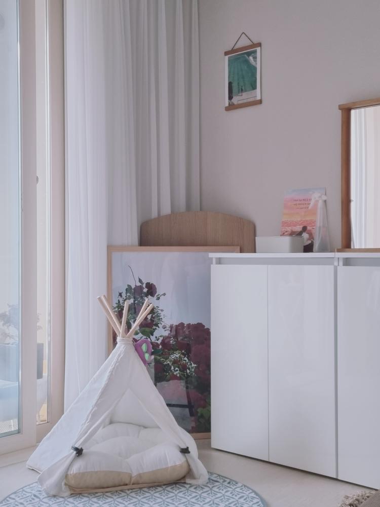 ‘어떻게 하면 최대한 방을 이용할 수 있을까?’ 싶어서, 매일 찾을 수밖에 없는 마스크나 가방, 고양이 사료 같은 것들을 놓는 놓아두었어요. 들어가고 싶은 방이 되게 만드는게 목표에요.
