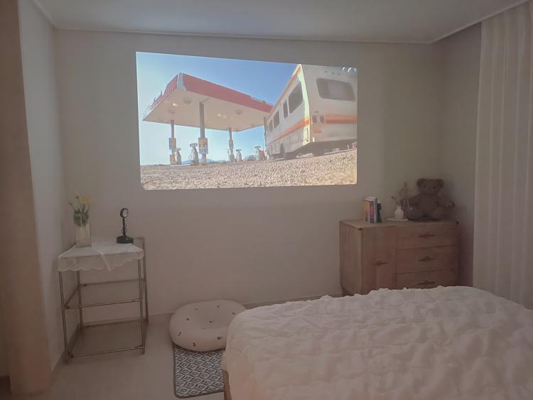 누워서 영화나 유투브도 감상할 요령으로 빔도 스피커를 놓았어요.