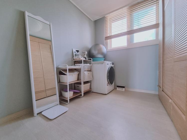 옷방은 말 그대로 옷장! 그리고 건조기랑 작은 선반을 두었어요. 처음엔 방에 건조기를 두면 불편하지 않을까 걱정했는데 너무 편해요! 꺼내자마자 바로 옷장으로 넣을 수 있으니 좋답니다^^
