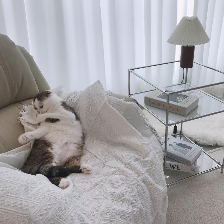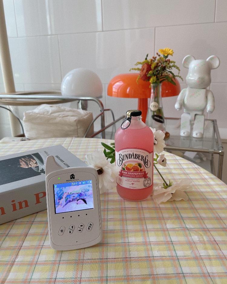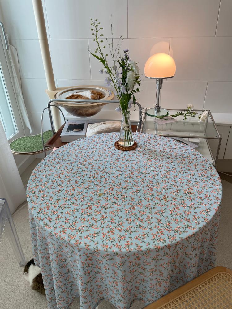 여기서 낮잠 재운 아가 베이비모니터로 보며 저만의 홈카페 시간도 즐겨요. 뉴 테이블보도 너무 예뻐 만족스러워요 :)