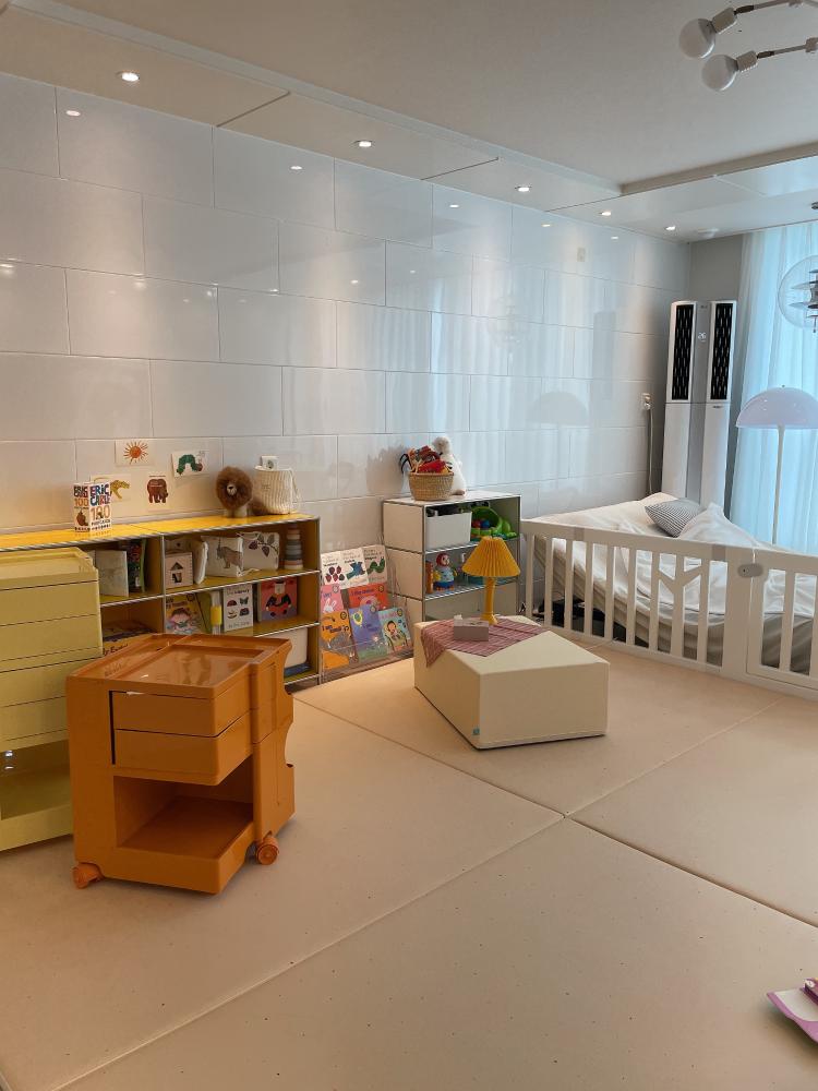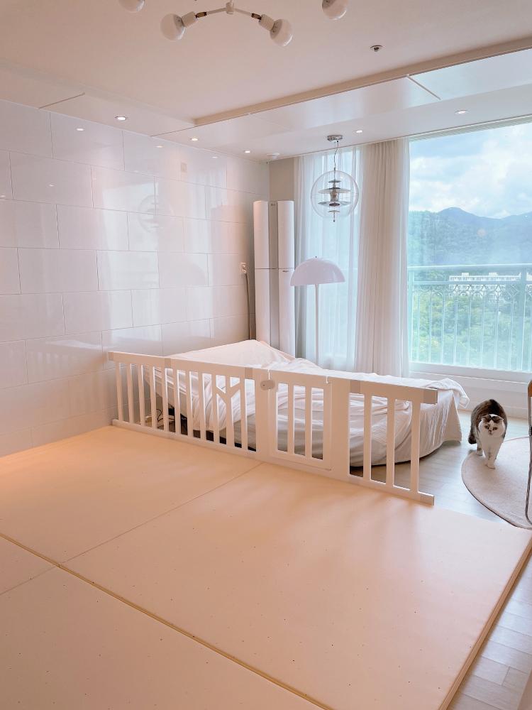 이제 아가 성장에 맞추어 매트를 설치하고 좀 더 편하면서 예쁜 실질적으로 편리한 인테리가 되었어요.