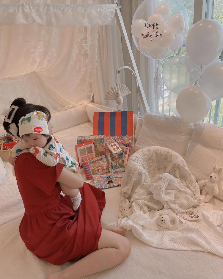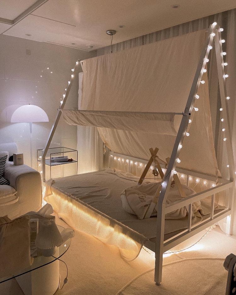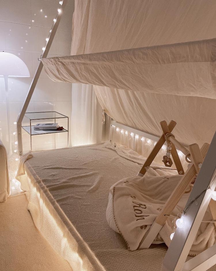 이제는 아가가 어느 정도 커서 아가 침대를 가운데로 두고 무드등도 보며 잠자리 습관을 들이고 있어요.