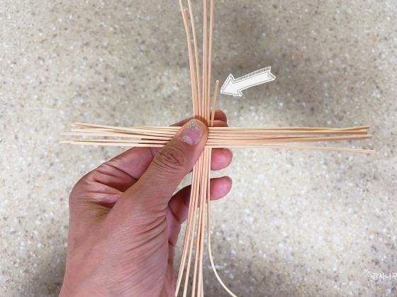 세로 6개를 먼저 놓고 가로 7개를 가운데 위에 놓고 긴 환심을 아래에 좀 위로 올라오게 놓습니다.