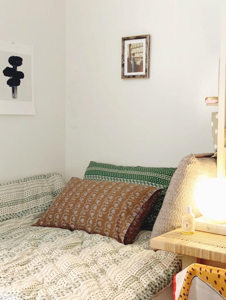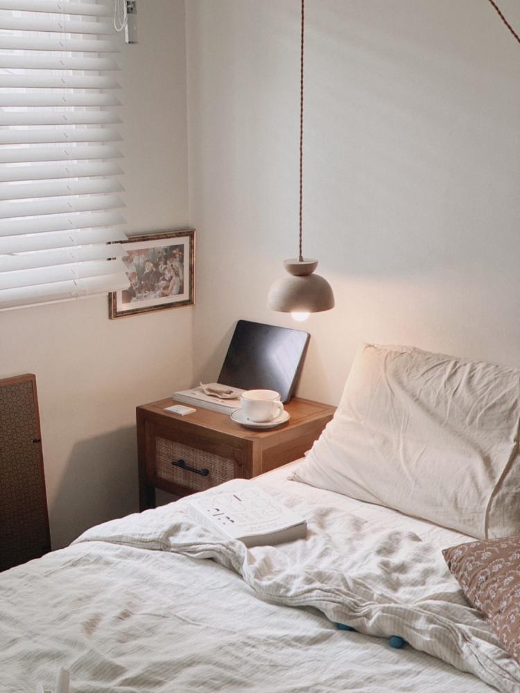또, 침실에는 우드 가구가 많아서 침구류는 밝은 색으로 사용하고 있어요.