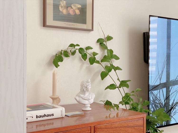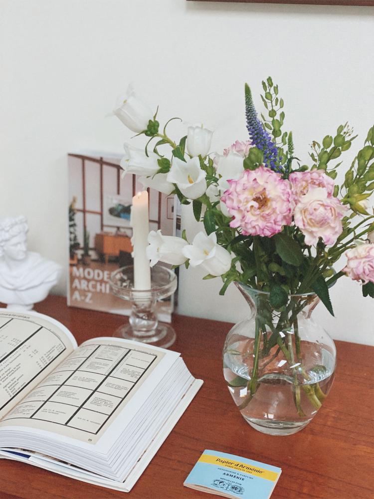 우드 가구 위에는 꽃도 두고, 오브제도 두고 제가 가장 좋아하는 것들로 꾸며요.