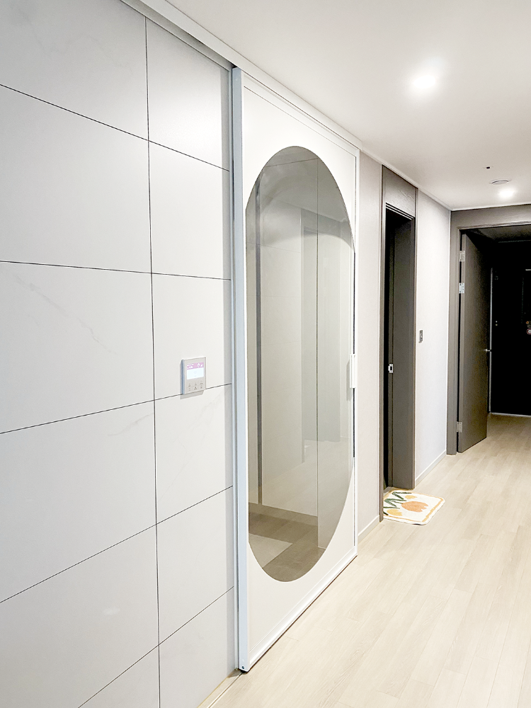아트월과 이어지는 느낌으로 화이트로 시공했고 둥근 아치형으로 부드러운 느낌을 주었답니다.
