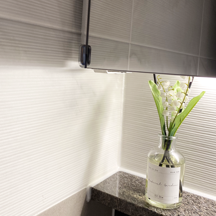 다음은 화장실인데요. 화장실 공간은 거울 밑 간접등 설치와 브론즈 파티션을 설치해 깔끔하면서도 모던한 느낌으로 인테리어 해보았어요 😊