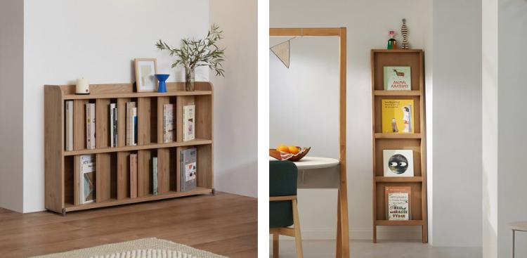 감성 우드 인테리어를 완성하는 포인트 아이템도 필요하죠. 거실을 마치 북카페처럼 만들어 줄 세르크 매거진랙과 책장은 두는 것 만으로도 마치 오브제처럼 인테리어 효과를 주는 제품으로 신혼 가구로는 딱이예요. 우리 부부만의 취향을 담아 사선으로 책을 꽂아 두고, 소품들로 꾸민다면 이 곳이 바로 우리 집의 포토존이 될 거예요.