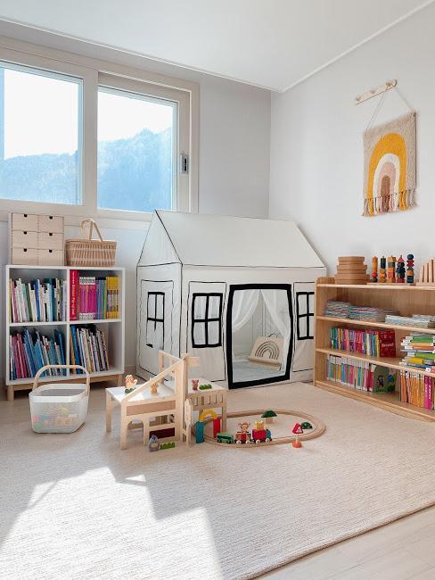 가장 채광이 좋은 곳에 아이 방을 만드신 메이 타임님의 아이 방입니다. 많은 장난감과 책들을 한쪽엔 놀이공간용으로 한쪽은 독서공간용으로 나누어 정리하셨다 해요. 확실히 나눠 정리해놓으니 보기도 좋고 깔끔해 보이네요:)