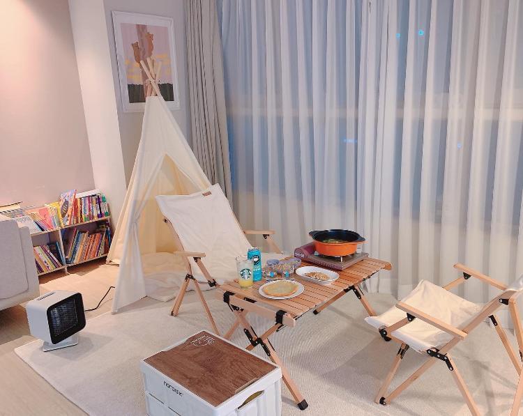 집안 곳곳을 보면 아이를 위해 배려한 부분이 많이 보입니다:). 아이가 올라갈 수 있게 주방에 두어진 계단이라던가, 거실에 아이와 함께 할 수 있는 미끄럼틀과 홈 캠핑존이 있답니다. 코로나로 인해 집콕 하는 요즘 홈 캠핑을 하며 감성 캠핑 기분을 내보셨어요. 모든 공간에 아이와 함께하는 게 느껴지는 집이네요^^