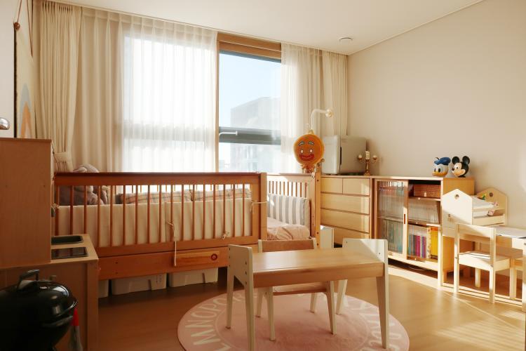 아이만을 위해 만든 낑깡님의 아이 방입니다! 낑깡님의 아이 방도 햇살이 잘 드는 곳이라는데요. 책상을 구석이 아닌, 가운데 두면서 답답해 보이지 않도록 배치한 점이 포인트랍니다. 여기서 책도 보고 잠도 자면서 아이가 가장 많이 머무르는 공간이 되었습니다.