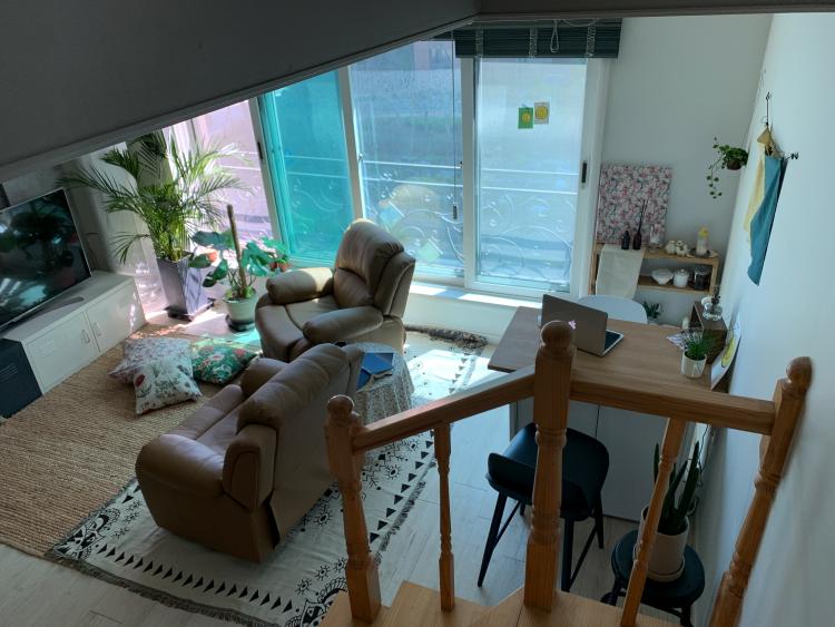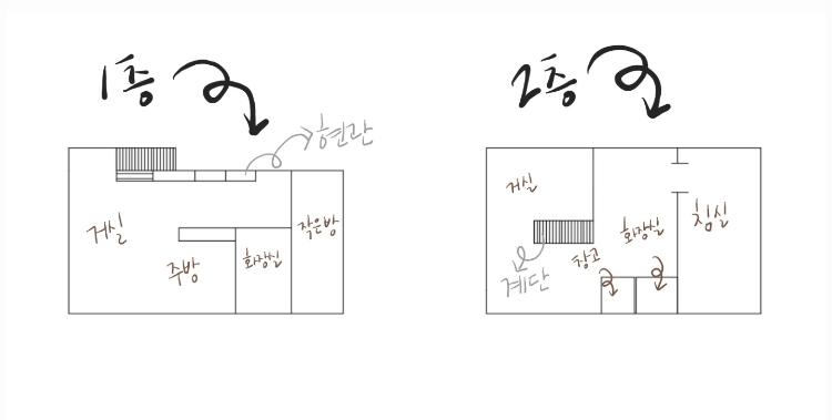 처음 이 집을 보았을 때 참 재미있는 구조라 한눈에 반해 계약을 했었답니다. 신랑의 빠른 결정에 조금 급하게 한 듯하지만, 지금은 그때 이 집을 구하지 못했다면 얼마나 눈에 밟혀 아쉬워했을까 한답니다.. 저희 집은 복층 형태의 방을 2개를 가지고 있는 20평대의 빌라에요. 아래층에 방 하나 거실과 주방, 위층의 방 하나 거실 이런 구 조랍니다. 아래층은 주방과 거실을 위주로. 위층은 안방을 중심으로 활용하고 있어요.