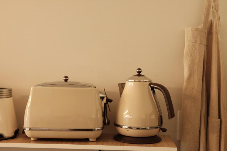 주방에서는 냉장고 같은 큰 가전들 외에도, 필요한 소형가전들도 참 많아요. 전기포트, 믹서기, 전자레인지 같은. 공간은 좁은데 말이에요. 그래서 기존 붙박이장과 주방 안쪽으로 폭이 작은 선반을 두고, 소형 가전들을 올려두고 사용하고 있어요.