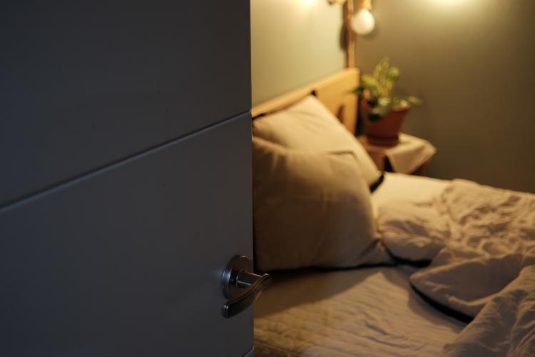 침실은 저희 집 공간 중에 가장 미니멀한 곳인 듯해요. 침실에는 다른 가구 없이 침대와 침대맡의 협탁을 두고 사용하고 있어요. 침대는 높지 않은 평상형으로 되어 있는 프레임이에요. 침대를 구매할 때, 프레임의 사이즈는 슈퍼 킹으로, 매트리스 사이즈는 퀸으로 하여 매트리스를 두고도 여유롭게 활용할 수 있는 공간을 두었답니다.