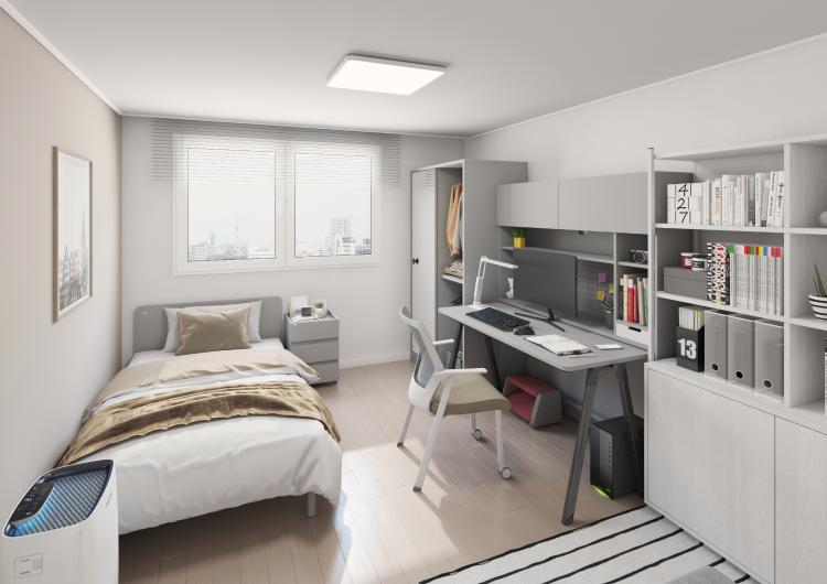코로나 19로 원격 수업이 일상화 되면서 집에서도 집중이 될 수 있는 환경을 마련해주는 게 굉장히 중요해졌죠. 방안에서 생활하는 시간이 길어졌기 때문에, 규칙적인 생활습관을 가질 수 있도록 ‘집중하는 분위기’로 꾸며주는 게 좋습니다. 먼저 책상은 침대와 등지게 배치하는 게 중요한데요, 시각적으로도 침대가 보이지 않아야 집중력을 높일 수 있는 환경이 마련되기 때문이죠.