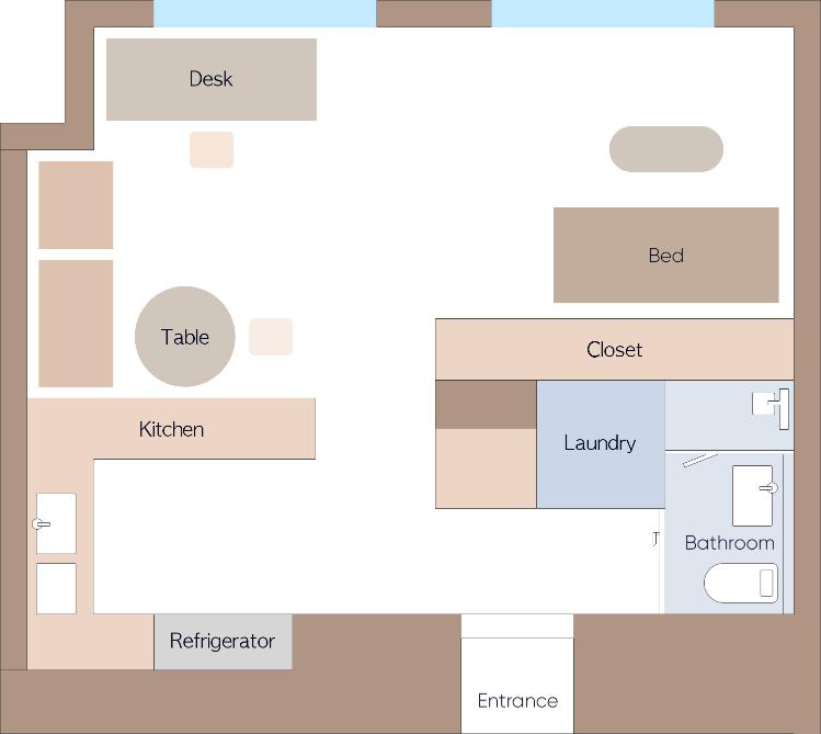 빌트인으로 수납공간이 배치되어있어서 방을 좀 더 넓게 활용할 수 있습니다