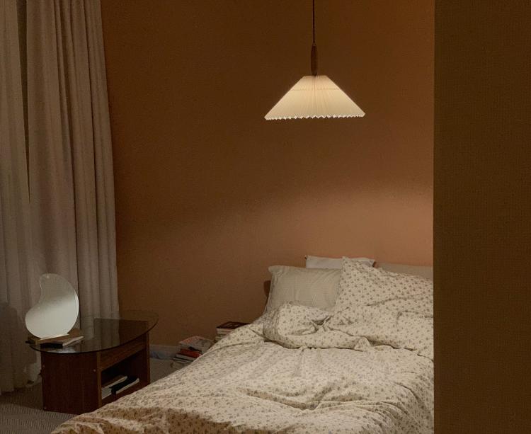 플리츠 조명은 침실 인테리어를 따뜻하게 연출하는 효과를 줄 수 있습니다.