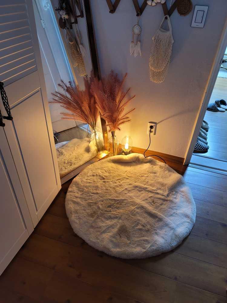 드레스룸만큼 거울을 자주 보는 곳이 없죠! 아예 포토존을 꾸미신 only****님의 드레스룸입니다. 러그와 조명 소품으로 포토존을 꾸미셨는데요. 옷도 갈아입고 사진도 마음껏 찍을 수 있을 것 같아요:) 특히 어두울때도 잔잔한 무드가 있는 모습이 계속 사진을 부르는 포토존이네요