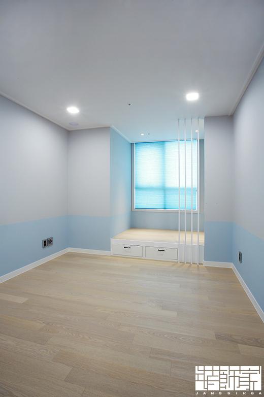 아들방은 블루&그레이 투톤 컬러를 사용하였으며, 파티션과 맞춤가구를 사용하여 아이만의 특별한 침실 공간을 만들어주었습니다. 그리고 딸아이 방은 핑크 컬러로 화사하면서도 깔끔하게 꾸몄습니다.