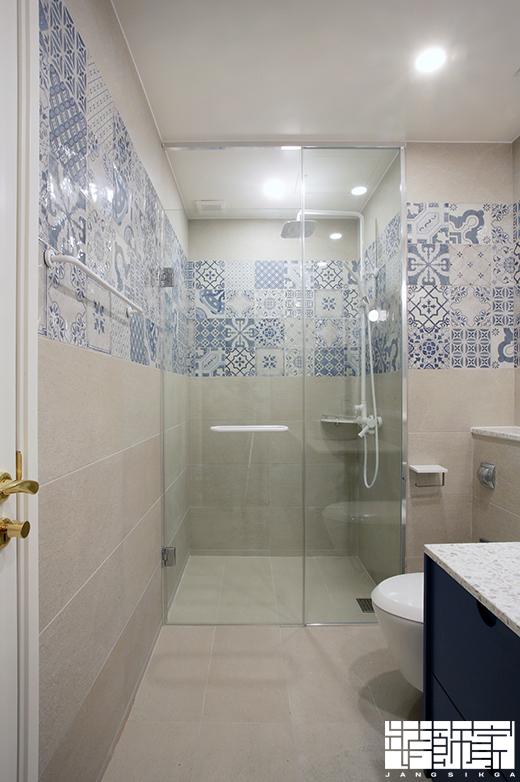 패턴타일로 이국적인 분위기를 연출한 안방 & 거실욕실