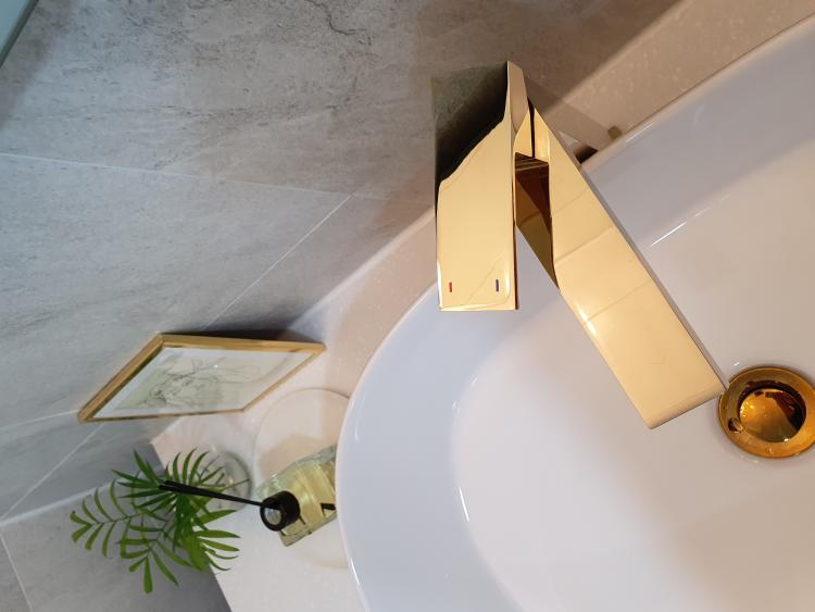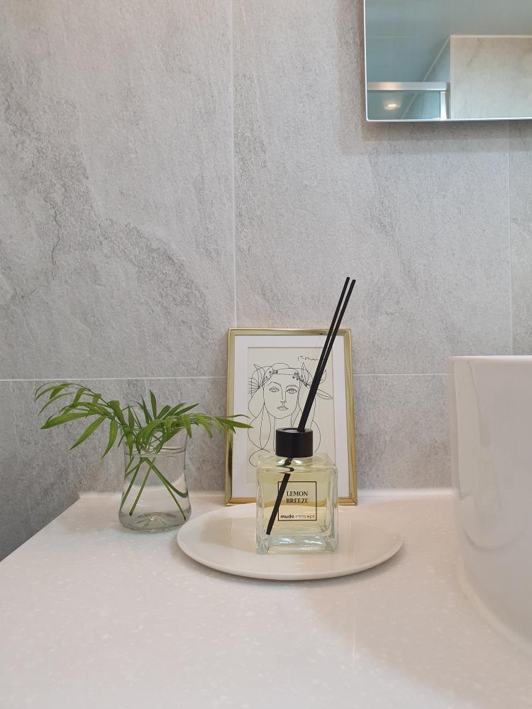 심플한 블랙 타일에 골드를 더하니 심플함과 화려함이 어우러져 만족스러워요. 또 제 취향인 골드를 반영하여 더욱 보기 좋아요 :)