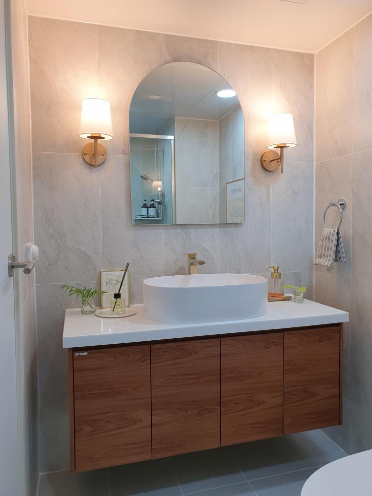 욕실에 상부장을 하지 않으면 욕실 공간이 훨씬 더 넓어 보이는 효과가 있고 또 고급스럽게 보인답니다.