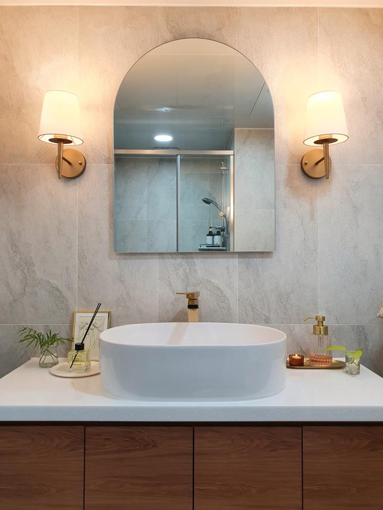 깔끔하면서도 고급스러운 분위기를 더하고 싶어서 욕실에도 조명에 신경을 썼어요.