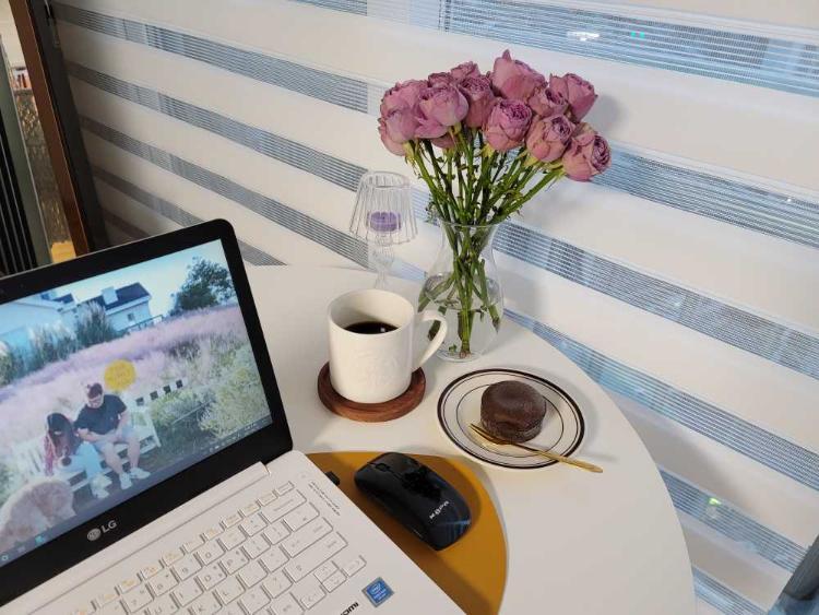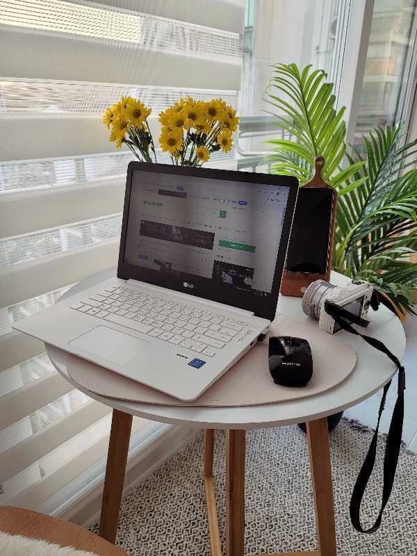 색다른 꽃과 의자에 러그를 깔아 또 다른 분위기를 만들어 줄 수 있습니다. 화사한 화이트 톤에 노란 꽃이 한층 발랄한 분위기를 만들어주는 것 같아요. 아까 보여드렸던 only****님의 또다른 분위기의 작업공간 이랍니다.