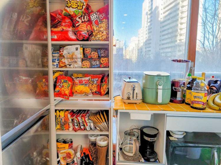 자그마한 아파트를 넓게 쓰는 방법으로 베란다를 활용하신 youn****님의 베란다 모습입니다:) 주방에 붙은 베란다에 냉장고 같은 큰 가전을 두고 틈새 수납장과 미니 전자렌지대를 활용하여 주방 가전을 배치해 주셨어요. 덕분에 주방이 매우 깔끔해지셨다 합니다:)