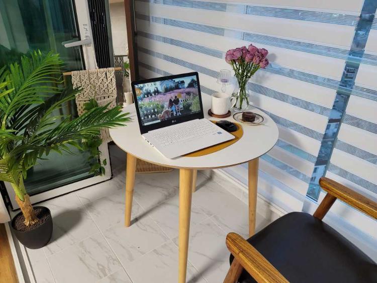 베란다에서 종종 작업을 하시는 only****님은 베란다를 작업공간으로 활용하시기도 하는데요. 플렌테리어와 마크라메를 달아 청량한 느낌도 얹어 주셨습니다:) 저런 공간에서 작업하면 효율이 오를 것 같네요^^