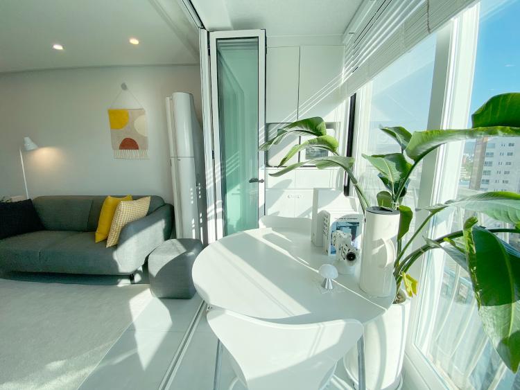 플랜테리어가 인상깊은 “으네그레이스”님의 베란다입니다. 으네그레이스님은 깔끔하고 심플한 화이트톤으로 집안을 유지하고 계십니다. 폴딩 도어를 열면 화이트 테이블의 분위기 있는 홈카페가 등장한답니다:)