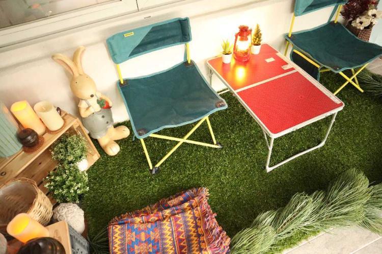 chsp****님은 인공 잔디를 깔고 그 위에 캠핑 도구를 활용하여 베란다를 꾸미셨는데요. 아직 초보 캠핑 인테리어라고 생각하신대요. 충분히 멋진 홈캠핑 베란다인데 말이죠^^