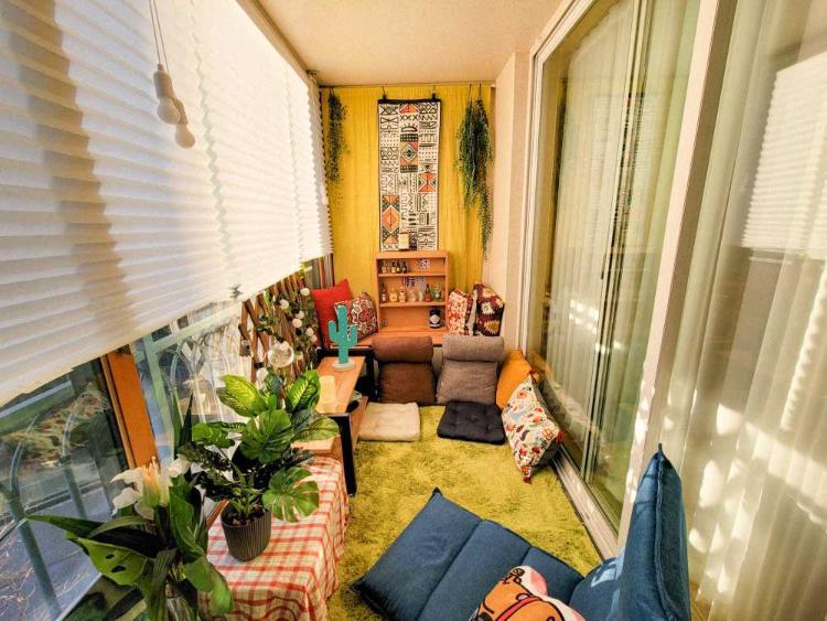 youn****님의 베란다입니다. 잔디색 러그로 매력적인 베란다를 꾸며주셨는데요. 다양한 쿠션 방석이 베란다를 한껏 더 멋스럽게 만들어주는 것 같아요^^