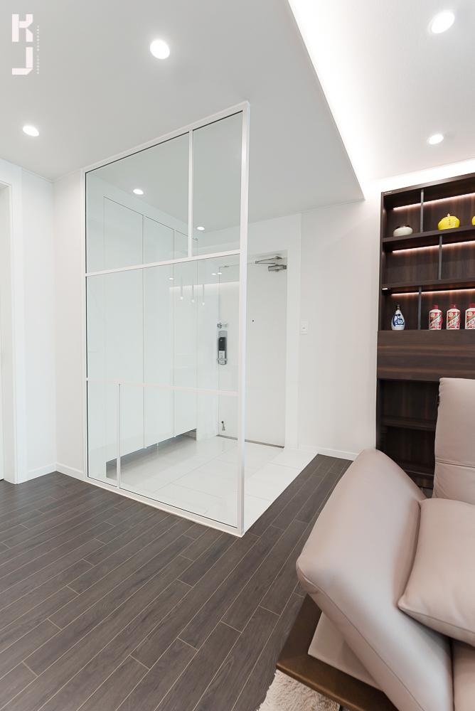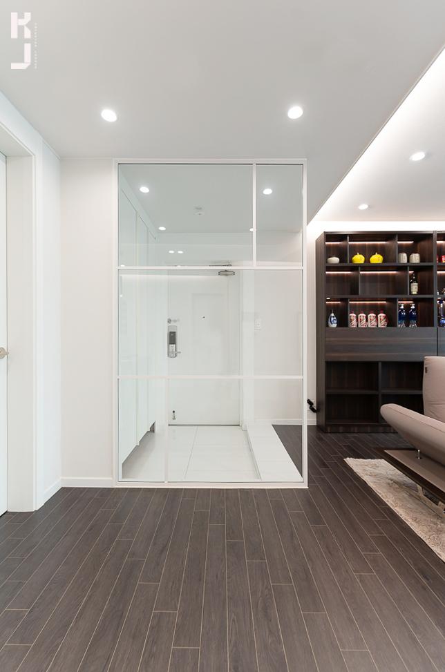 입구방향을 좌측으로 바꾸었어요! 현관장과 타일, 철제 파티션까지 현관은 화사하게 올 화이트랍니다! :)