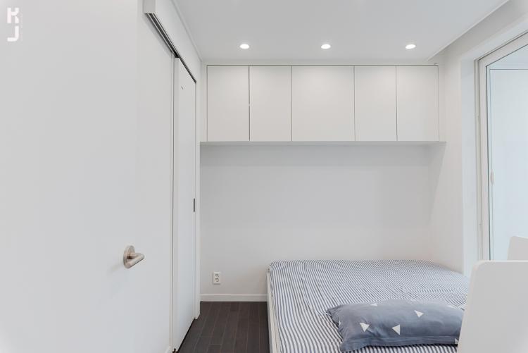 다음은 게스트룸이에요! 침대와 상부 수납장, 기존 매립붙박이장까지 ㅎㅎ