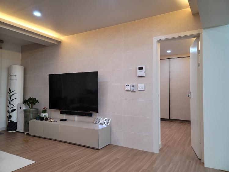 아트월은 베이지 톤의 무광 타이로 무난하게 꾸몄습니다. 화려하지도 너무 하얗지도 않게, 따뜻한 느낌이 나게요!