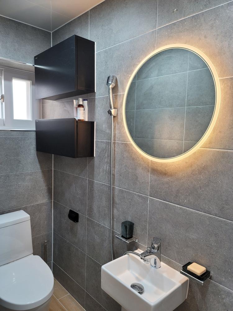간접 조명이 달린 거울이 요즘 트렌드인가 봐요. 저희도 거실 화장실에 달고 싶었는데 커다란 수건장에 밀려 자리가 부족해 안방 화장실로 왔어요.