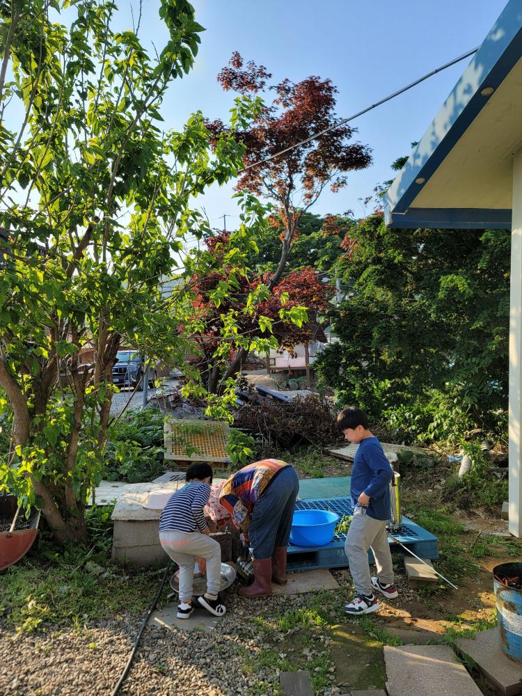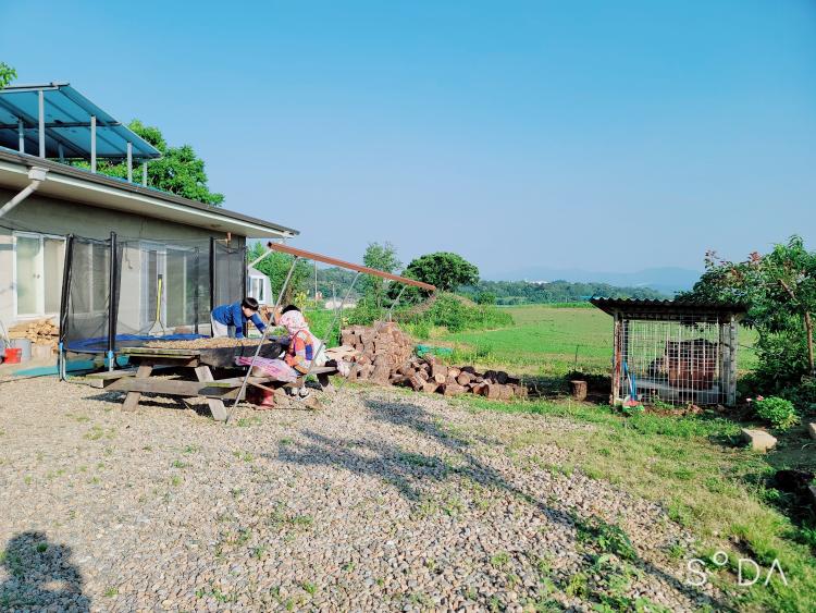 저희 집 마당은 넓지 않지만 앞에 커다란 공터가 있어서 아이들이 뛰어놀기 아주 좋아요. 앞집 아주머니께서 텃밭이며 꽃밭이며 어찌나 잘 가꾸시는지, 저희도 마당 공사가 끝나면 예쁘게 정원을 가꾸어 보고 싶어요.