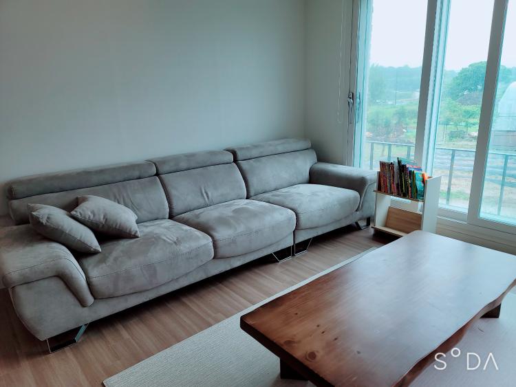 요즘 아쿠아 텍스 소파가 트렌드인 것 같아요. 청소도 편하고 고급스럽기도 해서 아주 만족하고 있어요. 4인용 소파 사이즈(2900)가 우리 집 거실 벽과 딱 맞아 떨어져요.